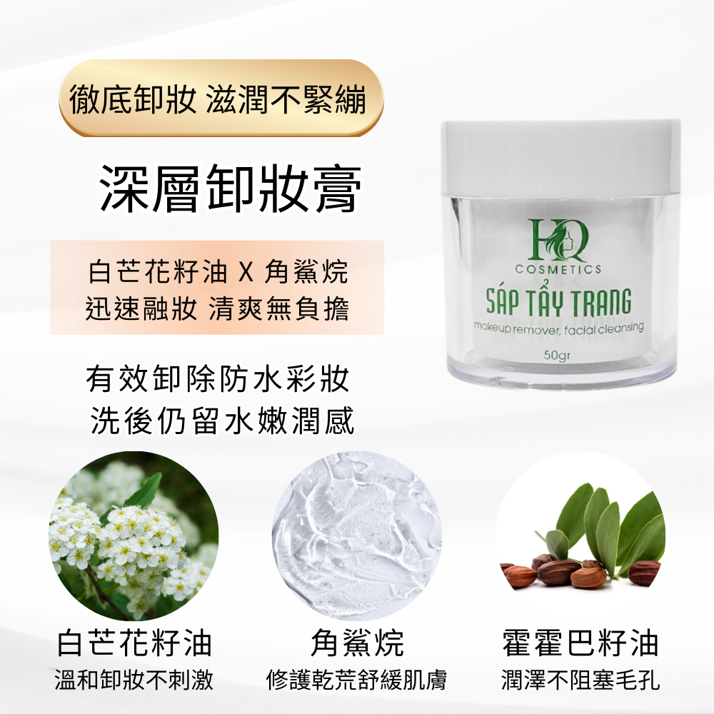 • 深層卸妝膏:徹底卸妝、修護不乾燥
