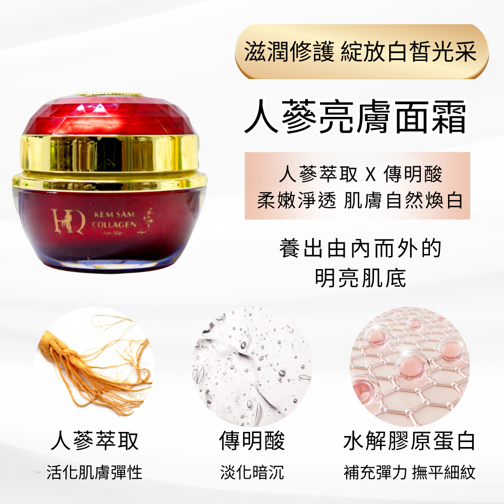 • 人蔘亮膚面霜:潤澤保濕、美白淡斑