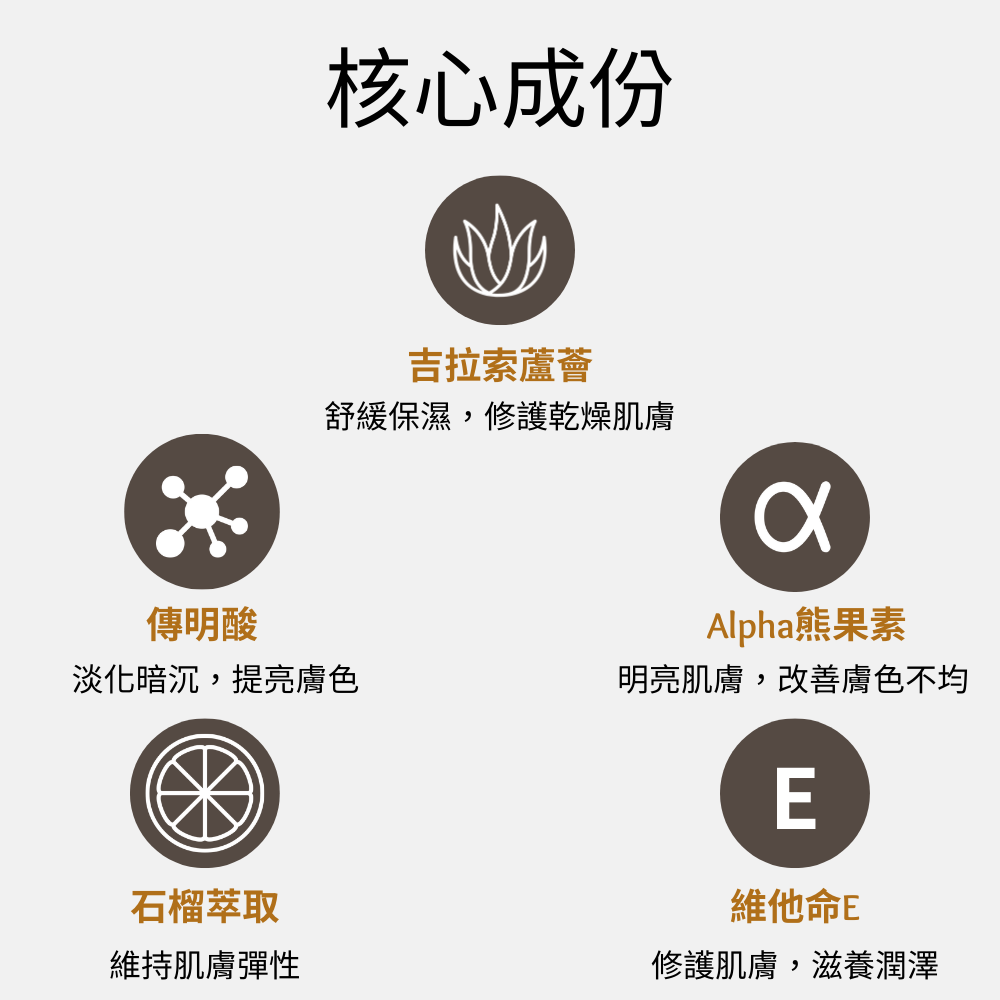 傳明酸 × 熊果素 × 石榴萃取